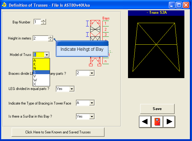 In the example above, the choice of bays, model, type and internal bracing are supplied in drop-down menus where only the consistent elements are included whereas the height can be typed in directly or can be adjusted with the spinner buttons.