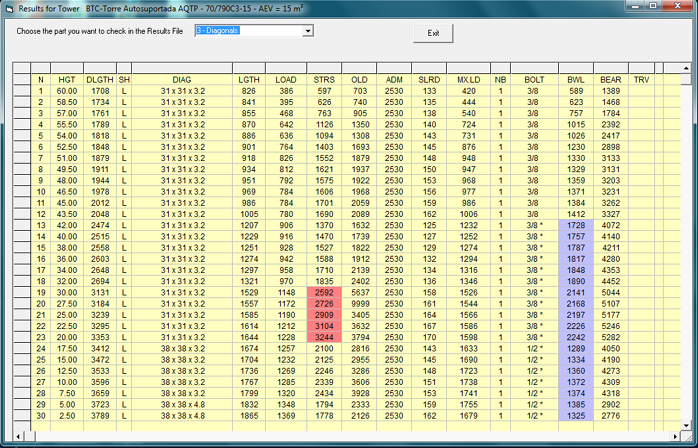 - Results obtained are reliable precise and easy to work with. Verauto is a tried and tested product. - Thousands of towers of all types, still in use, have been dimensioned or verified using VERAUTO. - Accurate results that are easy to analyze. - Results are shown with highlighted information. See the table below showing results for the diagonals of a small self-supporting structure.